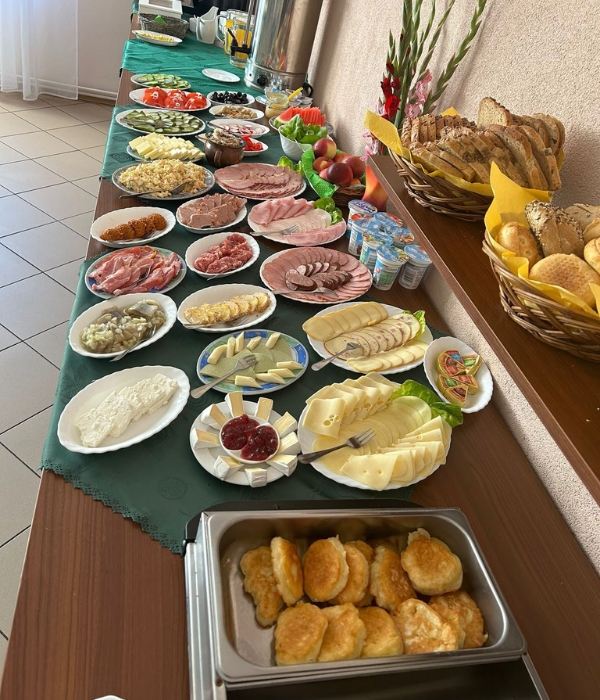 W Pensjonacie TEDI 2 wiemy że dobre śniadanie to dobry początek dnia, dlatego codziennie przygotowujemy dla naszych Gości pyszne i świeże śniadania z lokalnych składników. Do wyboru goście mają potrawy mięsne i bezmięsne, nie zapominamy również o wegetarianach.