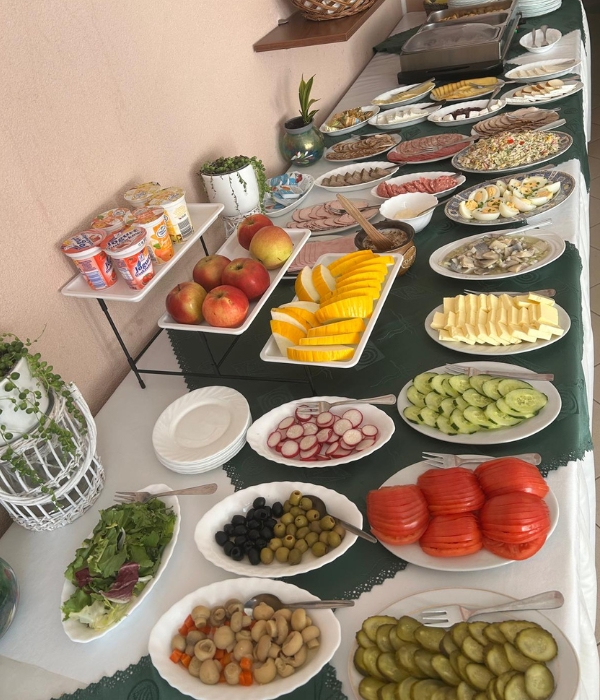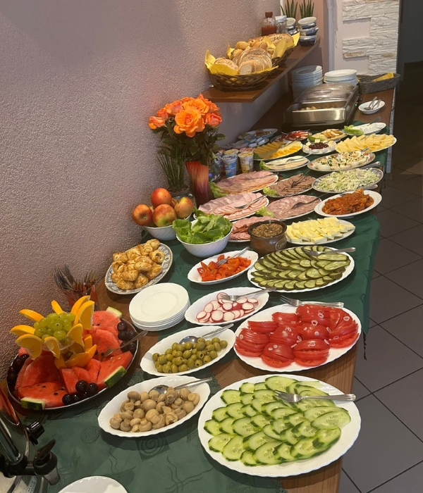 Śniadaniowe menu w Pensjonacie TEDI 2 jest różnorodne, zawsze pełne świeżych warzyw i soczystych owoców.