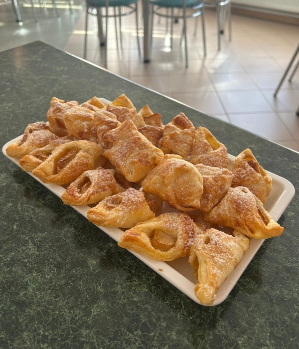 Sami robimy i serwujemy domowe naleśniki, gofry, dounty, pączki, ciasteczka z jabłkiem, bananem, chlebek bananowy i ciasto marchewkowe.